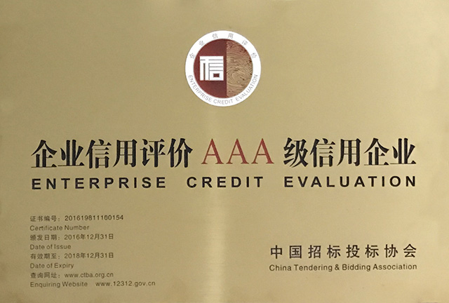 中國招標投標協(xié)會企業(yè)信用評價AAA級信用企業(yè)