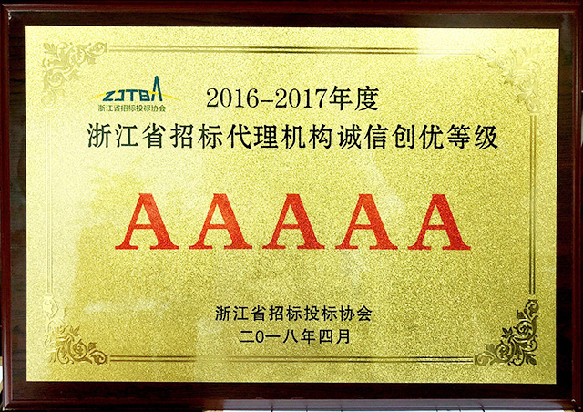 2016-2017年度浙江省招標代理機構誠信創(chuàng)優(yōu) AAAAA