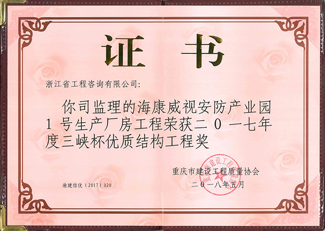 2017年度三峽杯優(yōu)質(zhì)結構工程獎-??低暟卜喇a(chǎn)業(yè)園1號生產(chǎn)廠房工程