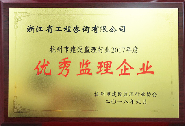 杭州市建設監(jiān)理行業(yè)2017年度優(yōu)秀監(jiān)理企業(yè)