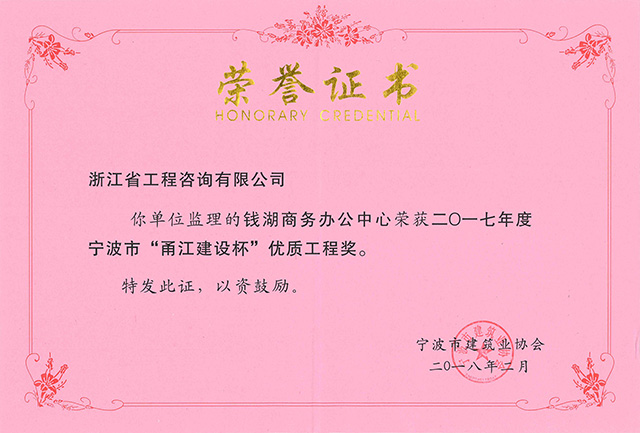 2017年度寧波市”甬江建設杯“優(yōu)質(zhì)工程獎-錢湖商務辦公中心