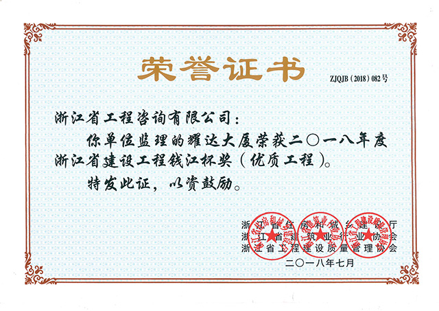 2018年度浙江省建設工程錢江杯獎(優(yōu)質(zhì)工程)-耀達大廈