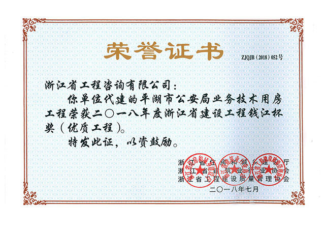 2018年度浙江省建設工程錢江杯獎(優(yōu)質(zhì)工程)-平湖市公安局業(yè)務技術用房工程