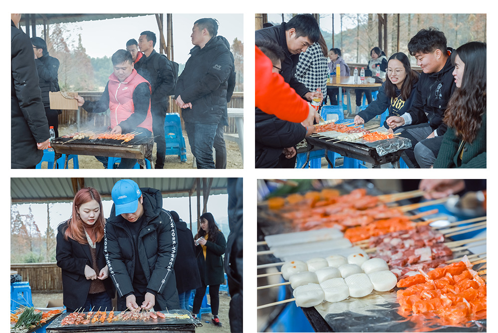 經(jīng)過一上午的活動,大家早已饑腸轆轆。午餐是頗受歡迎的自助燒烤。大家紛紛大顯身手,展示各自的廚藝,有的負責(zé)刷油,有的負責(zé)給食物翻身,還有的則負責(zé)最后的調(diào)味,場地內(nèi)一片熱火朝天的景象。