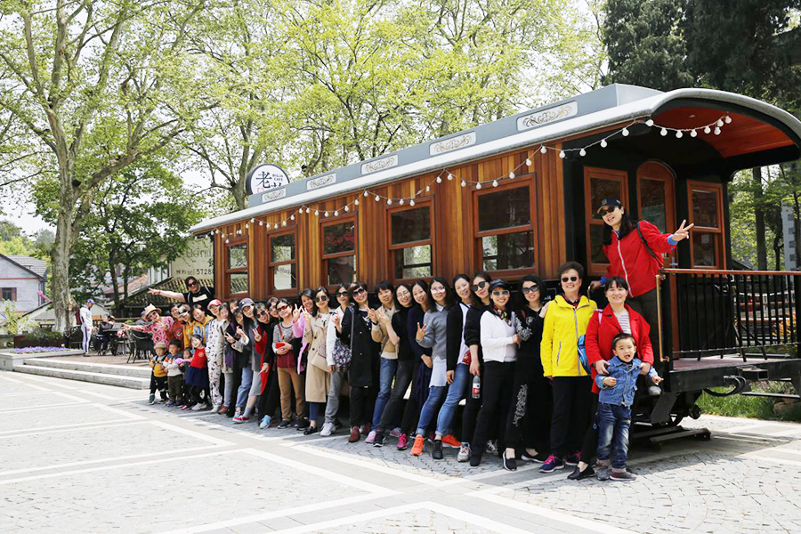 踏青第二站,民國風(fēng)情小鎮(zhèn)。莫干山民國風(fēng)情小鎮(zhèn)位于莫干山腳的庾村集鎮(zhèn)。在鎮(zhèn)中心庾村黃郛東路上,有一條200多米長的民國風(fēng)情街,這里有著深厚的民國文化底蘊(yùn),小資咖啡館、老式照相館、特色茶餐廳、布鞋店等在梧桐樹的映襯下又增添幾許民國的情調(diào)。小朋友們在庾村集鎮(zhèn)的中心廣場上看噴泉,喂鴿子,玩得不亦樂乎。一部分人循著鄉(xiāng)間小道,爬到了莫干山頂,在山頂參觀了裸心谷酒店外圍。呼吸著城市里沒有的新鮮空氣,欣賞著山下的美景,大家紛紛表示一個(gè)小時(shí)的登山非常值得。最后,大家在庾村集鎮(zhèn)集合,到火車頭、噴泉旁拍照合影留念,在歡聲笑語中,度過了愉快的一天。