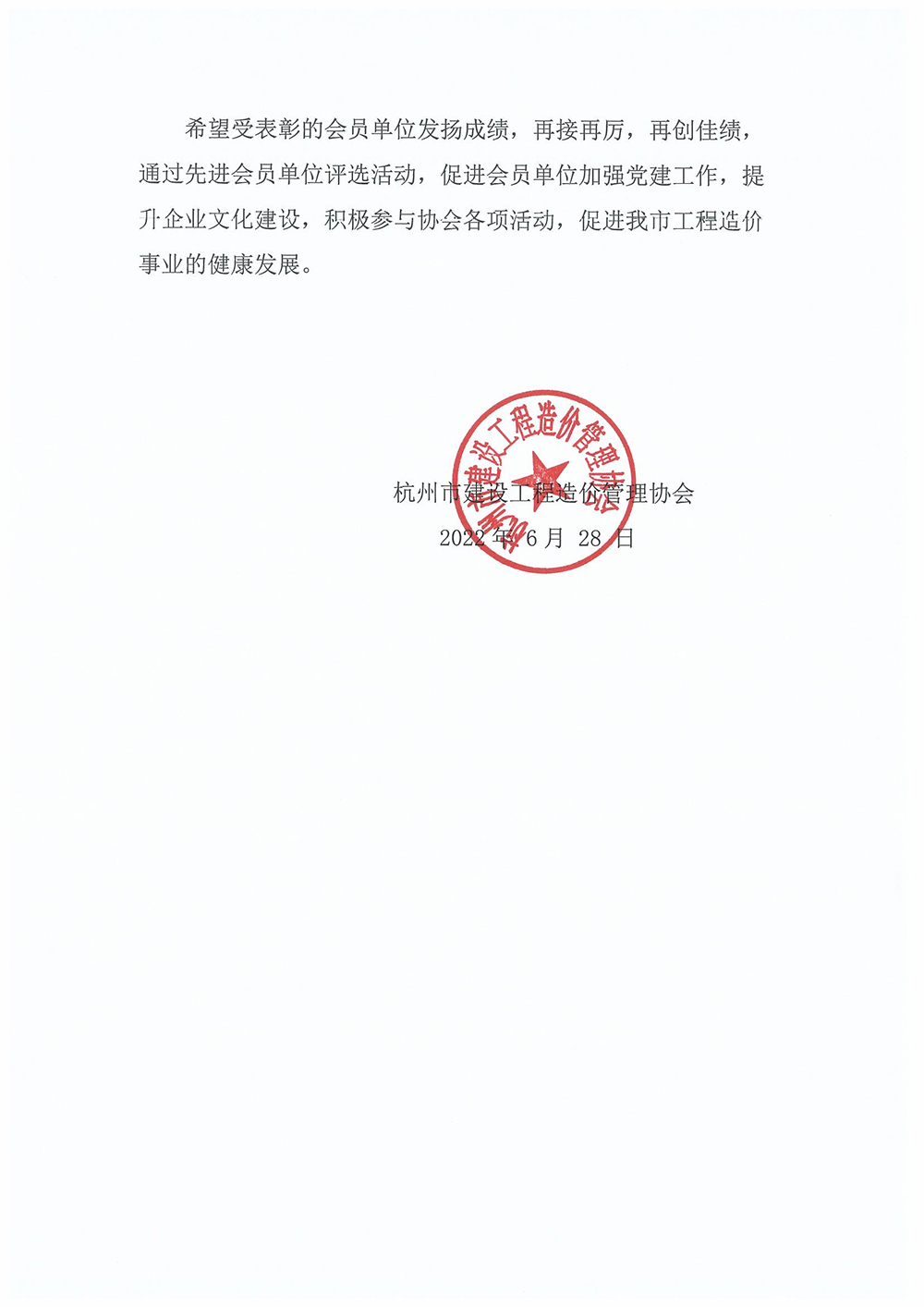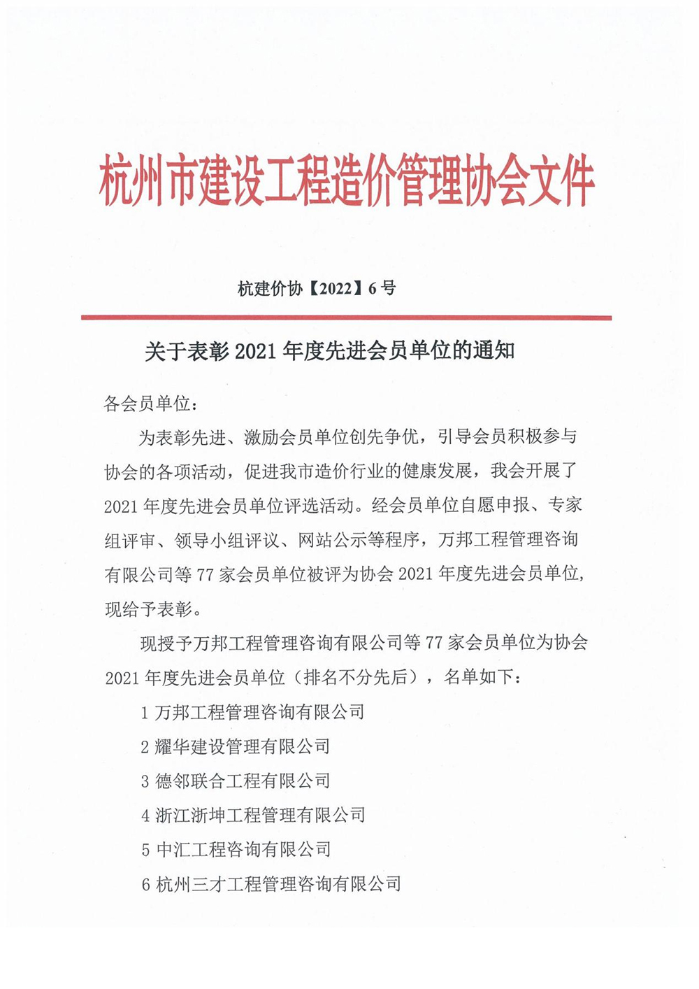近日,杭州市建設(shè)工程造價管理協(xié)會開展了2021年度先進(jìn)會員單位評選活動,經(jīng)會員單位自愿申報、專家組評審、領(lǐng)導(dǎo)小組評議、網(wǎng)站公示等程序,77家會員單位被評為協(xié)會2021年度先進(jìn)會員單位。我公司憑借優(yōu)異的表現(xiàn),取得“2021年度先進(jìn)會員單位”榮譽(yù)稱號。