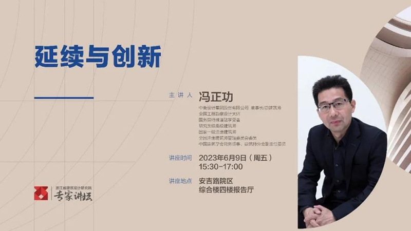 本次考察調(diào)研以馮正功大師在浙江省院綜合樓報(bào)告廳作的題為“延續(xù)與創(chuàng)新”的主題講座作為收尾。講座中,馮正功大師闡述了“延續(xù)建筑”的概念,即發(fā)現(xiàn)、探索與總結(jié)建筑所處場(chǎng)地獨(dú)特的地域、時(shí)間、人文、自然、歷史、記憶等重要特征,基于當(dāng)代建筑語(yǔ)境與人本多重需求的基礎(chǔ)上,將以上元素延續(xù)并創(chuàng)新于建筑設(shè)計(jì)之中。隨后又分別從延續(xù)建筑的空間維度、時(shí)間維度、人文維度作了詳細(xì)的講解,同時(shí)還提出了“延續(xù)建筑”的十條實(shí)踐路徑,為現(xiàn)場(chǎng)的設(shè)計(jì)師們開(kāi)拓了思路。