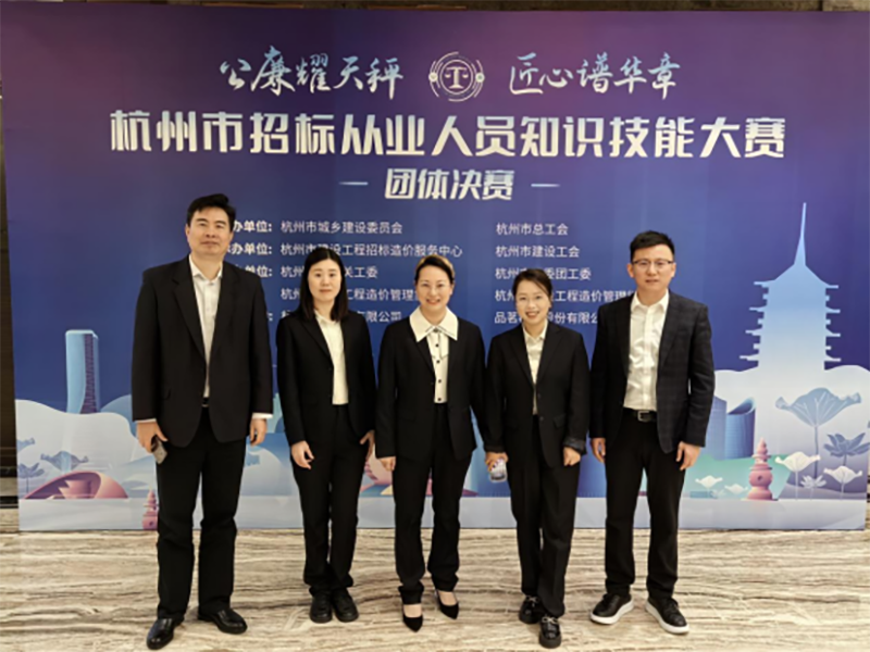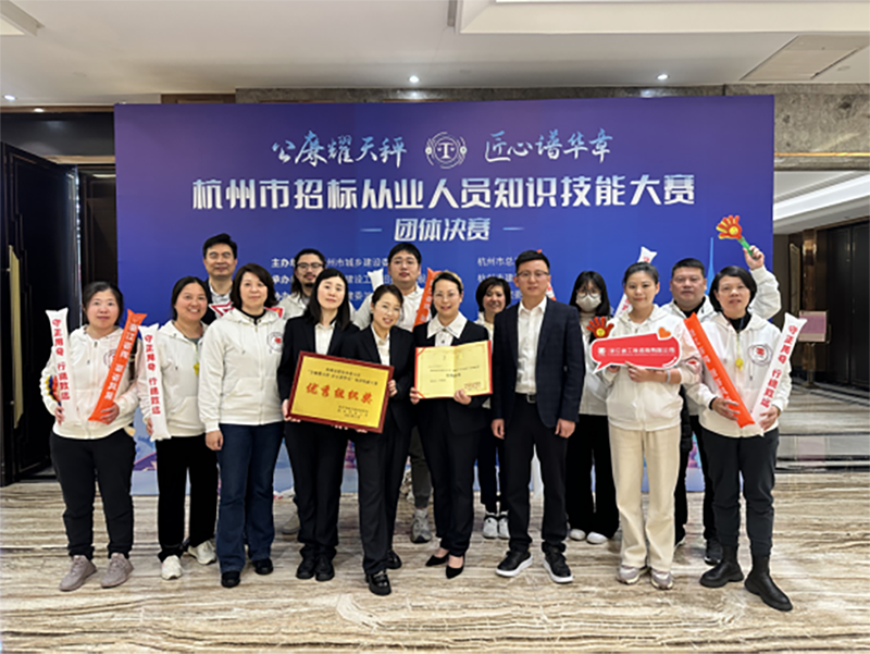 2023年11月28日下午,杭州市招標從業(yè)人員“公廉耀天秤 匠心譜華章”知識技能大賽團隊決賽圓滿落下帷幕。本次大賽由杭州市城鄉(xiāng)建設委員會、杭州市總工會主辦,杭州市建設工程招標造價服務中心、杭州市建設工會承辦,杭州市建設工程造價管理協(xié)會等單位協(xié)辦。本屆招標從業(yè)人員知識技能大賽是首次針對全市招標從業(yè)人員舉辦的知識技能大賽,分為個人賽和團體賽兩個階段。杭州市共有131家企業(yè)1433名造價從業(yè)人員報名參賽。在11月14日舉辦的個人決賽中,200名選手為個人而戰(zhàn)、為團體而戰(zhàn),經(jīng)過激烈角逐,我公司從眾多參賽企業(yè)中脫穎而出,成為參加團體決賽的十家企業(yè)之一。