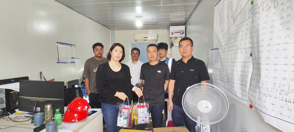 為了保障員工的身體健康,保障安全生產(chǎn),切實維護員工的健康和安全,2024年8月14日、15日,公司執(zhí)行總經(jīng)理楊哲野、辦公室主任金美青和副總工蔣挺等一行,代表公司黨總支、公司工會和公司領導以及各職能部門到公司直管項目現(xiàn)場開展夏季高溫慰問活動,看望并慰問堅守在工作一線的項目部同事們,給大家送去了防暑降溫用品。