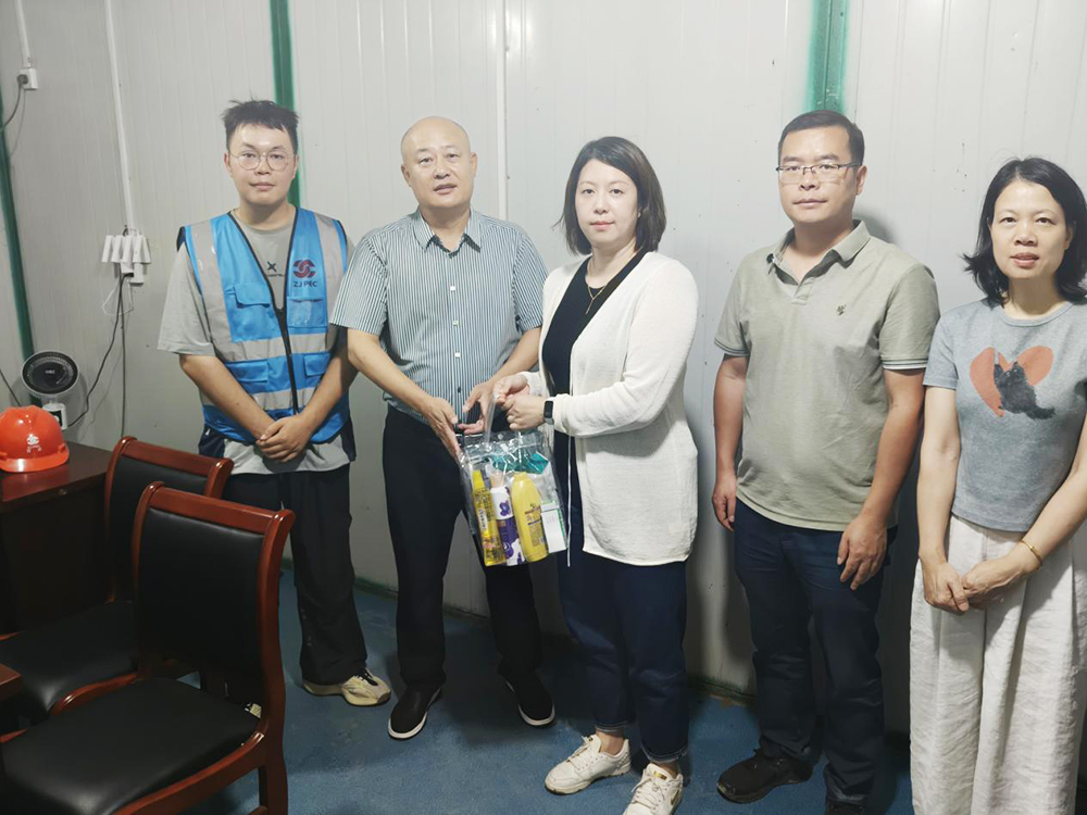 炎炎夏日,熱浪襲人。為切實(shí)守護(hù)一線員工身體健康,筑牢安全生產(chǎn)防線,維護(hù)員工安全權(quán)益,7月23日至25日,公司執(zhí)行總經(jīng)理?xiàng)钫芤皫ш?duì),辦公室主任金美青、副總工蔣挺、總師辦應(yīng)淙涵等組成慰問(wèn)團(tuán),代表公司黨總支、工會(huì)及公司領(lǐng)導(dǎo)班子,深入項(xiàng)目現(xiàn)場(chǎng)開展夏季高溫慰問(wèn)活動(dòng),為堅(jiān)守崗位的項(xiàng)目部員工送去防暑降溫物資與濃濃關(guān)懷。