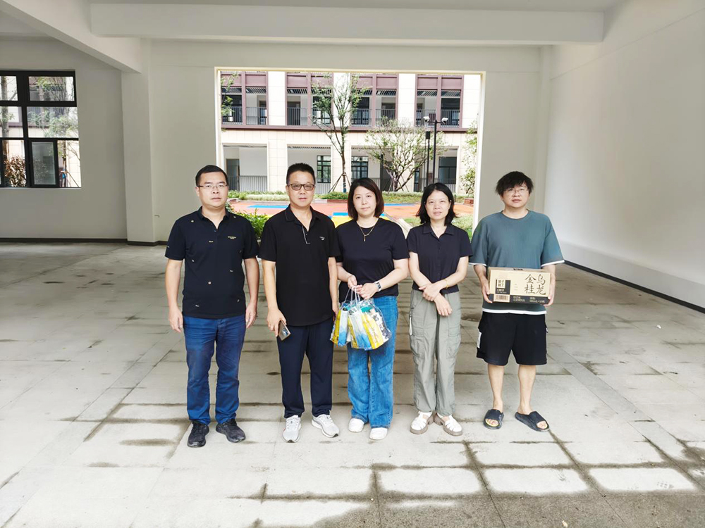 慰問(wèn)團(tuán)一行先后前往杭州職業(yè)技術(shù)學(xué)院新安江校區(qū)建設(shè)工程(一期)、之江度假區(qū)XH1705-05地塊保障性住房項(xiàng)目、海康機(jī)器人產(chǎn)品產(chǎn)業(yè)化基地建設(shè)項(xiàng)目監(jiān)理、浙江特殊教育職業(yè)學(xué)院天城路校區(qū)實(shí)訓(xùn)基地提升改造項(xiàng)目以及小和山單元XH1407-1(C)地塊九年一貫制學(xué)校項(xiàng)目進(jìn)行慰問(wèn)。每到一處,慰問(wèn)團(tuán)都與一線員工細(xì)致交流,關(guān)切詢問(wèn)大家的工作進(jìn)度與生活保障情況,將清涼物資一一送到員工手中,讓堅(jiān)守者感受到“高溫下的清涼關(guān)懷”。