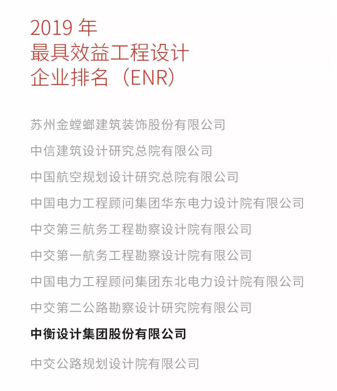 在8日舉辦的頒獎典禮上,還同時發(fā)布了2019ENR/建筑時報(bào)最具國際拓展力承包商、最具國際拓展力工程設(shè)計(jì)企業(yè)、最具效益承包商、最具效益工程設(shè)計(jì)企業(yè)、最值得推薦的10家中國工程法律專業(yè)律師事務(wù)所等榜單。中衡設(shè)計(jì)集團(tuán)名列“2019年最具效益工程設(shè)計(jì)企業(yè)”榜單。