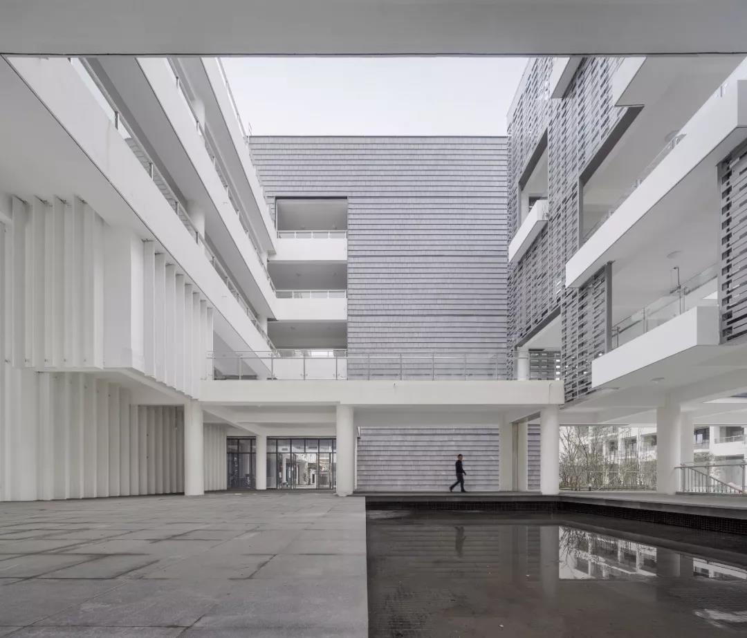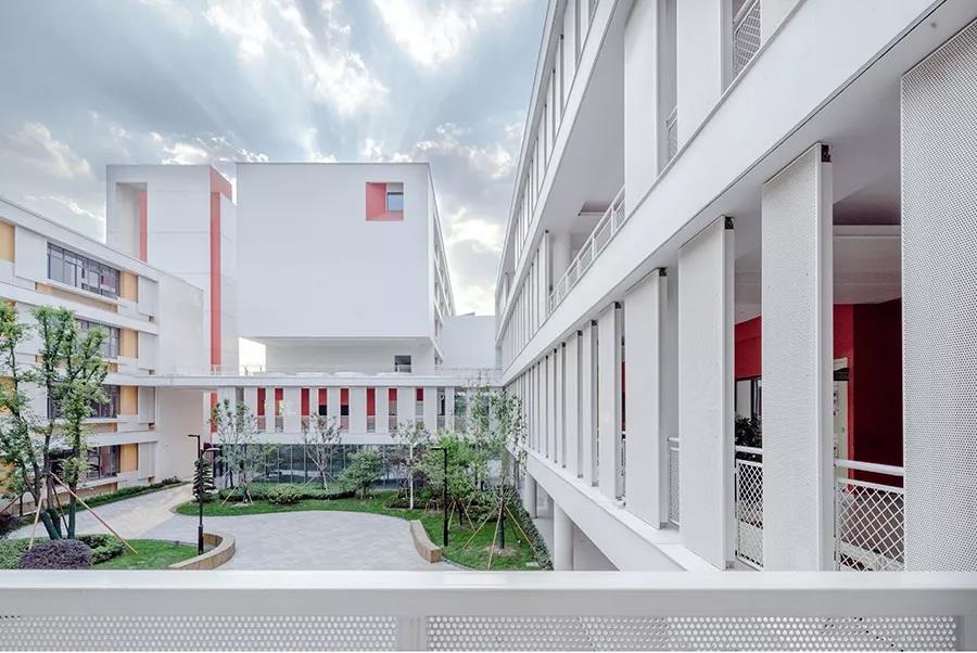 作為蘇州高鐵新城核心區(qū)的第一座九年一貫制的的校園綜合體,在功能上,中小學既要做到分區(qū)明確,又要共享、共用。在形態(tài)上,展現(xiàn)了新城區(qū)的未來屬性。高鐵新城第一中小學的校園,巧妙的將“泛在學習”和景觀之間彼此滲透,利用奇妙的空間關系,使環(huán)境在校園中流動,而“泛在學習”空間也突破了走廊的空間屬性,通過多樣性空間,將“使用即學習、學習即使用”的概念得以實現(xiàn)。
