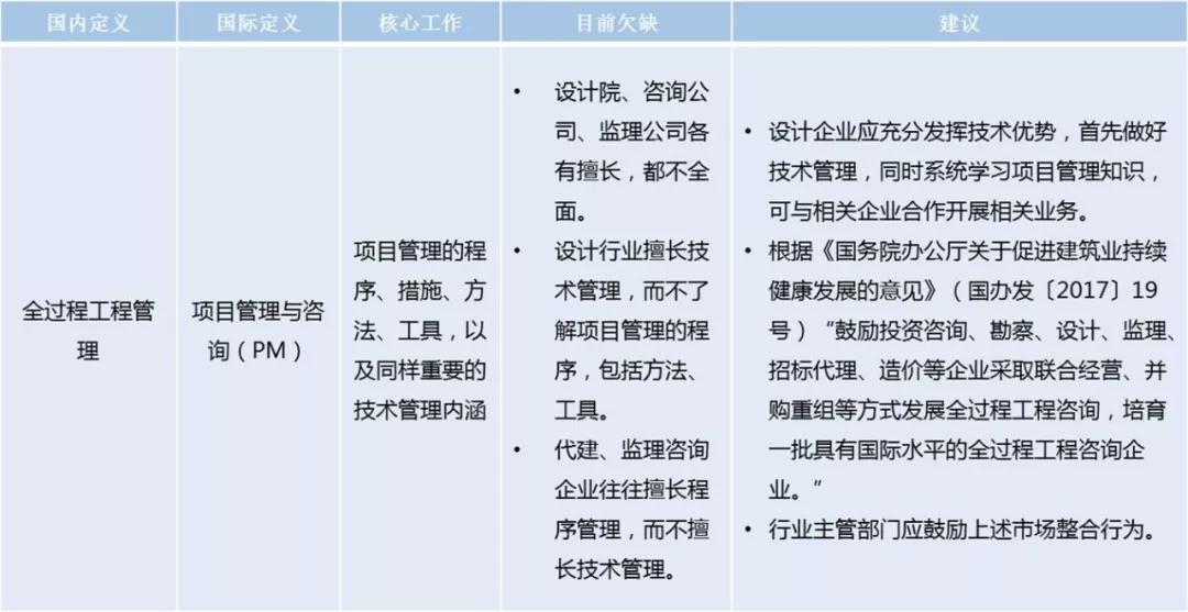 《國務(wù)院辦公廳關(guān)于促進(jìn)建筑業(yè)持續(xù)健康發(fā)展的意見》(國辦發(fā)[2017]19號(hào))中指出,在完善工程建設(shè)組織模式中應(yīng):“加快推行工程總承包”、“培育全過程工程咨詢”、“在民用建筑項(xiàng)目中,充分發(fā)揮建筑師的主導(dǎo)作用,鼓勵(lì)提供全過程工程咨詢服務(wù)”;在提高從業(yè)人員素質(zhì)上應(yīng):“加快培養(yǎng)建筑人才。積極培育既有國際視野又有民族自信的建筑師隊(duì)伍。加快培養(yǎng)熟悉國際規(guī)則的建筑業(yè)高級(jí)管理人才”。