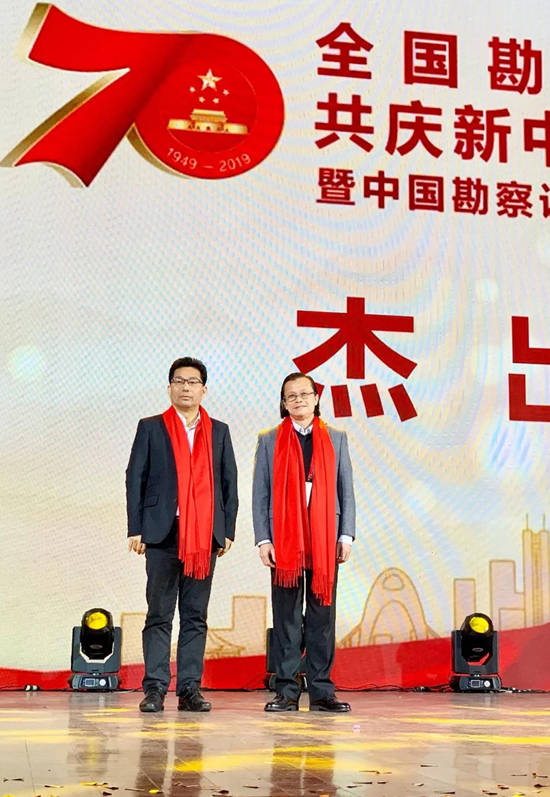 在當(dāng)天的慶祝大會上,馮正功董事長與全國工程勘察設(shè)計大師陳雄一起,作為杰出人物代表,上臺發(fā)言。