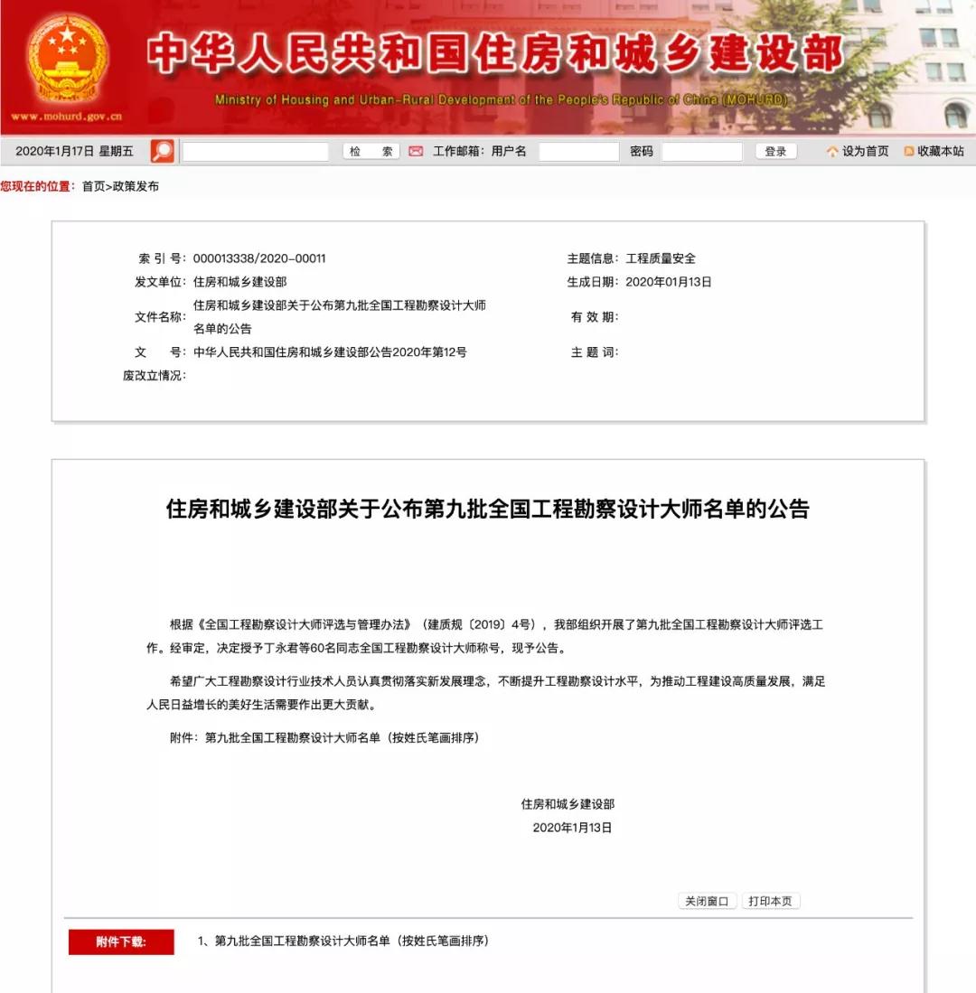 2020年1月,住房和城鄉(xiāng)建設(shè)部公布第九批全國(guó)工程勘察設(shè)計(jì)大師名單,共有60位同志被授予全國(guó)工程勘察設(shè)計(jì)大師稱(chēng)號(hào),其中建筑設(shè)計(jì)專(zhuān)業(yè)7位。中衡設(shè)計(jì)集團(tuán)股份有限公司董事長(zhǎng)、首席總建筑師馮正功榮獲全國(guó)工程勘察設(shè)計(jì)大師稱(chēng)號(hào)。