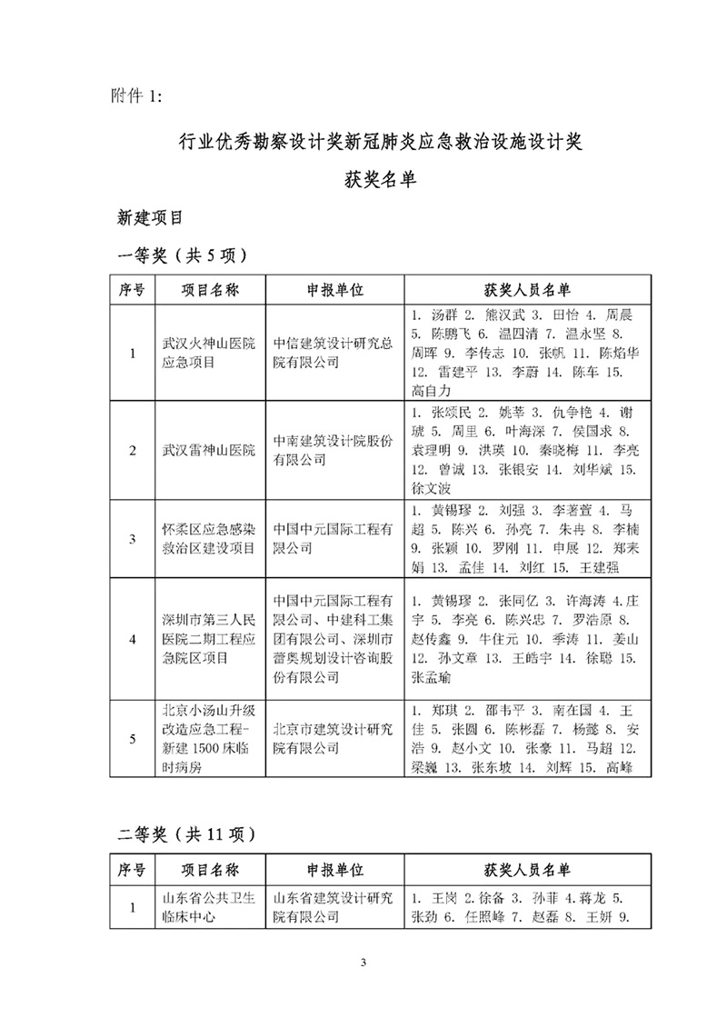 新冠肺炎疫情是新中國(guó)成立以來(lái)我國(guó)遭遇的傳播速度最快、感染范圍最廣、防控難度最大的一次重大突發(fā)公共衛(wèi)生事件。在疫情防控形勢(shì)嚴(yán)峻時(shí)期,各地新建、改擴(kuò)建了一批應(yīng)急救治設(shè)施,為大規(guī)模救治確診患者,扭轉(zhuǎn)疫情防控形勢(shì),發(fā)揮了非常重要的作用。為及時(shí)發(fā)揮這些項(xiàng)目在未來(lái)突發(fā)公共衛(wèi)生事件應(yīng)急救治設(shè)施建設(shè)中的引領(lǐng)示范作用,在特殊時(shí)期針對(duì)應(yīng)急需要,根據(jù)獎(jiǎng)勵(lì)委員會(huì)的專家意見(jiàn),決定在行業(yè)優(yōu)秀勘察設(shè)計(jì)獎(jiǎng)的平臺(tái)上,參照《工程勘察、建筑設(shè)計(jì)行業(yè)和市政公用工程優(yōu)秀勘察設(shè)計(jì)獎(jiǎng)評(píng)選辦法》(中設(shè)協(xié)字[2019] 38號(hào))要求,開(kāi)展工程勘察、建筑設(shè)計(jì)行業(yè)和市政公用工程優(yōu)秀勘察設(shè)計(jì)獎(jiǎng)(以下簡(jiǎn)稱行業(yè)優(yōu)秀勘察設(shè)計(jì)獎(jiǎng))新冠肺炎應(yīng)急救治設(shè)施特別設(shè)計(jì)獎(jiǎng)評(píng)選。