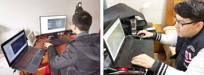 △因疫情不能到達(dá)蘇州現(xiàn)場(chǎng),小伙伴們支起臨時(shí)工作臺(tái)