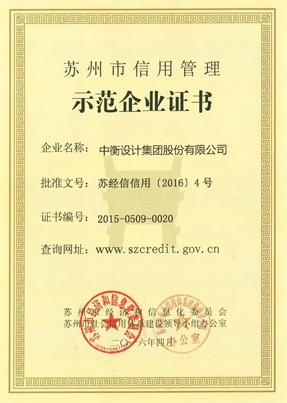 多年來,中衡設計堅守誠信經營理念,秉承“敬誠共創(chuàng)”的價值觀:敬業(yè),誠信,共贏,永遠在路上的創(chuàng)新創(chuàng)業(yè)精神,在質量管理、產品服務、客戶信息信用管理、創(chuàng)新科研、人才培養(yǎng)、勞動保障等方面均取得長足的發(fā)展,多次榮獲江蘇省勘察設計行業(yè)誠信單位、蘇州市信用管理示范企業(yè)、蘇州市服務業(yè)名牌、“蘇州市勞動和諧企業(yè)”“AAAAA級勞動保障信用單位”等榮譽。以此次獲評A級為契機,中衡設計集團將繼續(xù)誠信經營、綜合發(fā)展,為營造公平競爭的市場環(huán)境和高質量的發(fā)展成果貢獻自己的力量。