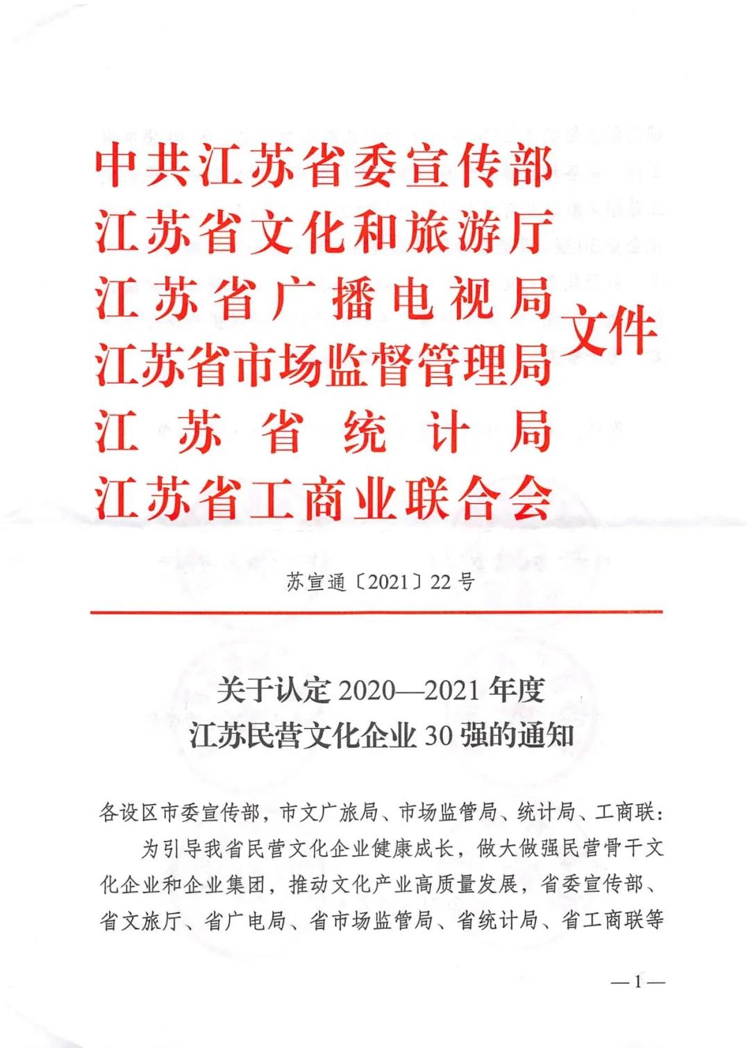 △ 2020-2021年度江蘇省民營文化企業(yè)30強(qiáng)名單(部分)