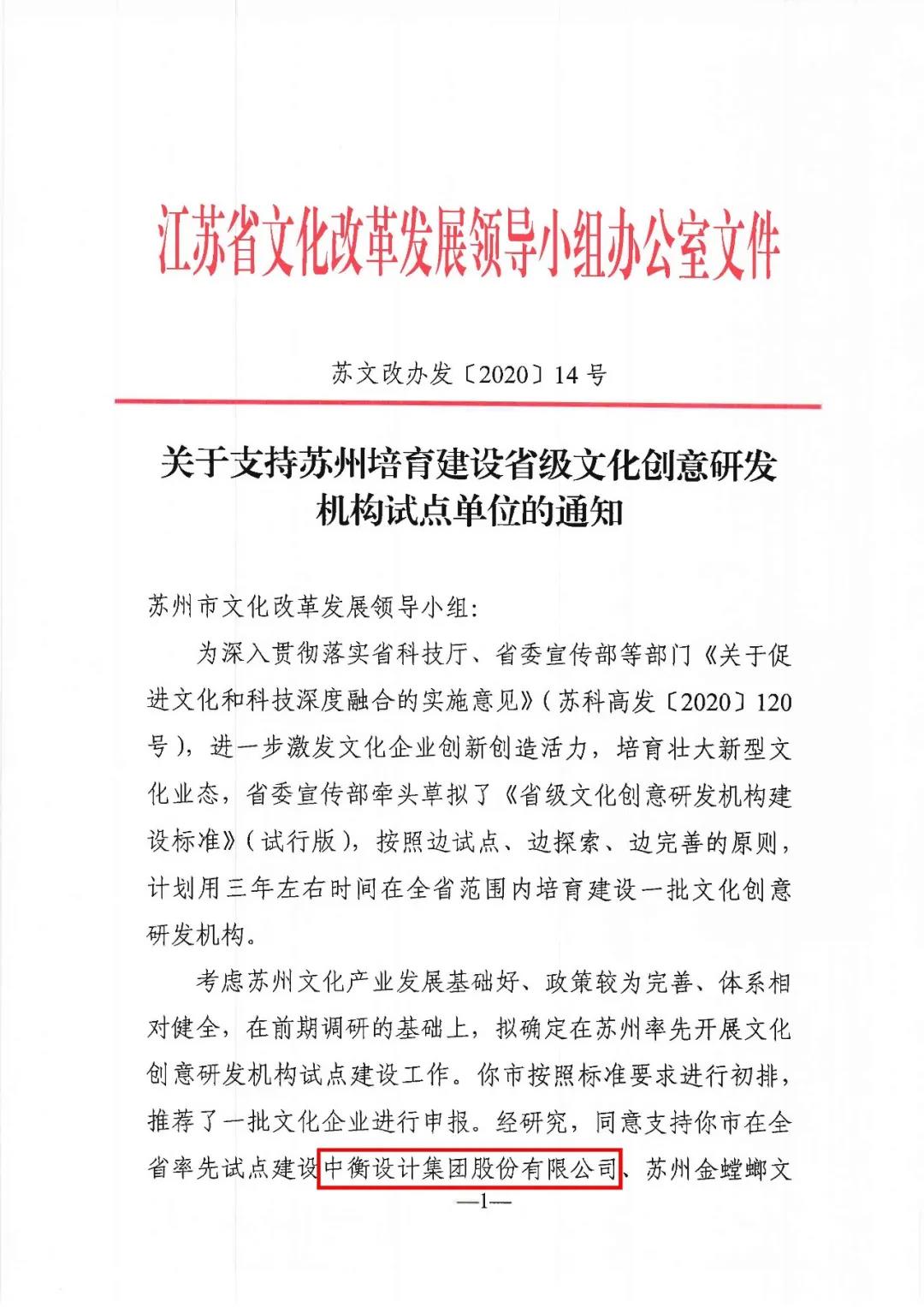 △ 關(guān)于同意中衡設(shè)計(jì)等企業(yè)建設(shè)省級文化創(chuàng)意研發(fā)機(jī)構(gòu)試點(diǎn)單位的通知