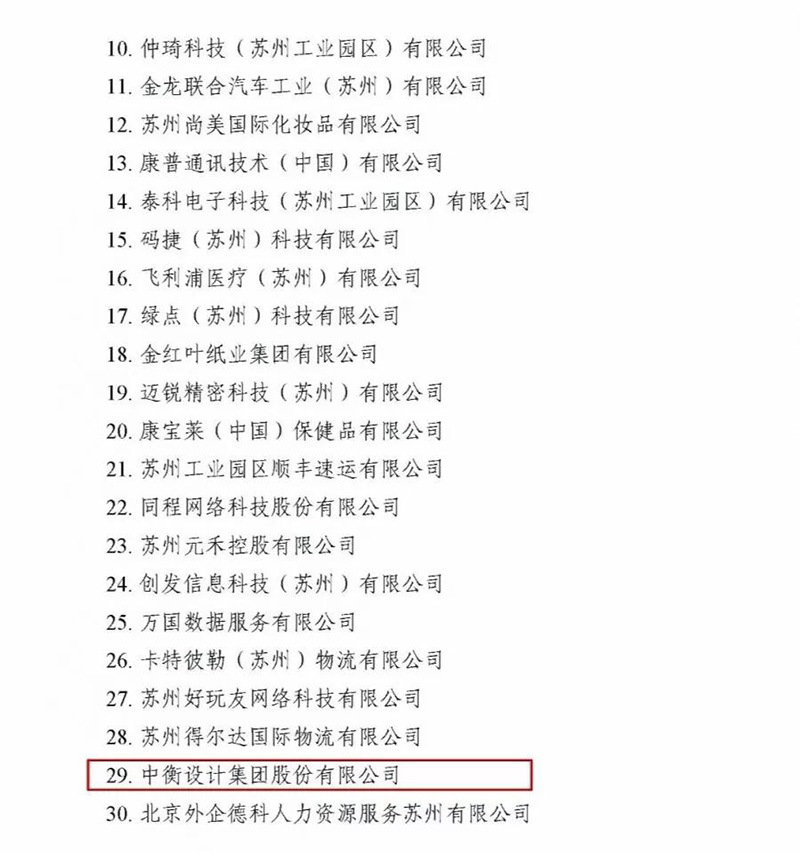 其中“2018年度經(jīng)濟貢獻突出獎(營收增長)”大獎,以表彰中衡設計2018年營收快速增長對園區(qū)GDP增長做出的貢獻,中衡設計也是唯一上榜的工程技術服務企業(yè)。同時獲得此殊榮的還有蘇州三星顯示公司、博世汽車部件(蘇州)有限公司、三星電子(蘇州)半導體有限公司、康普通訊技術(中國)有限公司、飛利浦醫(yī)療(蘇州)有限公司、康寶萊(中國)保健品有限公司、卡特彼勒(蘇州)物流有限公司等國際著名公司。
