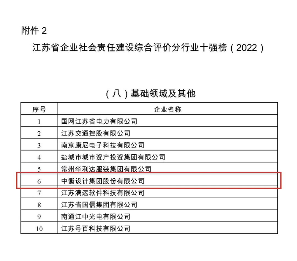 為進(jìn)一步推進(jìn)全省企業(yè)社會責(zé)任建設(shè),根據(jù)《江蘇省企業(yè)社會責(zé)任建設(shè)指導(dǎo)意見》《江蘇省企業(yè)社會責(zé)任評價基本指南》等文件要求,江蘇省工業(yè)和信息化廳組織開展了2022年度全省企業(yè)社會責(zé)任建設(shè)綜合評價工作,最終產(chǎn)生2022年度省企業(yè)社會責(zé)任建設(shè)綜合評價制造業(yè)典范榜和分行業(yè)十強榜名單。