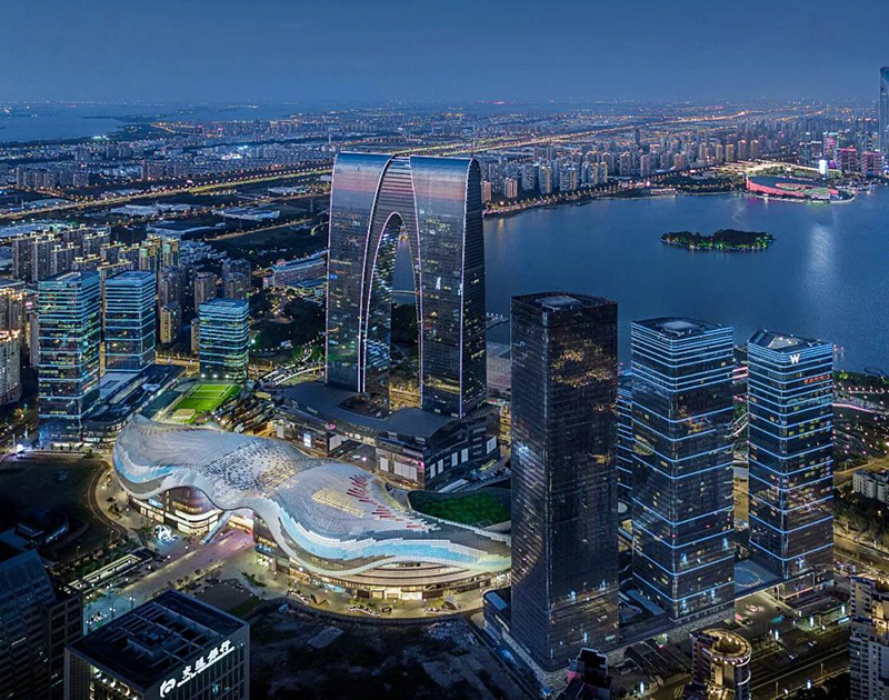 ▲蘇州中心(南區(qū)及超長(zhǎng)異形穹頂“未來(lái)之翼”)實(shí)景照片