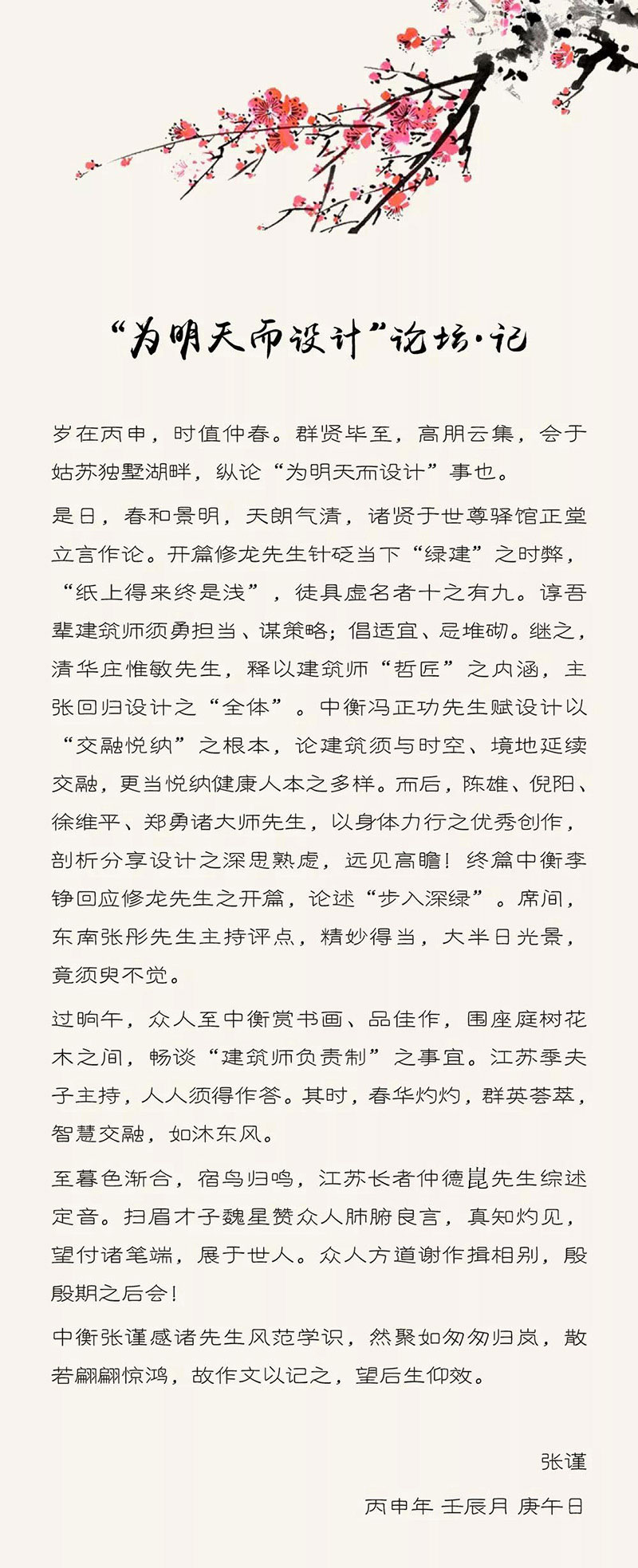 1.2015年春暖花開(kāi)時(shí),許多專家參觀公司新入駐的辦公大樓,對(duì)其綠色理念大加贊賞,之后的屋頂花園沙龍及論壇也給大家留下了深刻印象,為此,我作《“為明天而設(shè)計(jì)”論壇記》以志。
