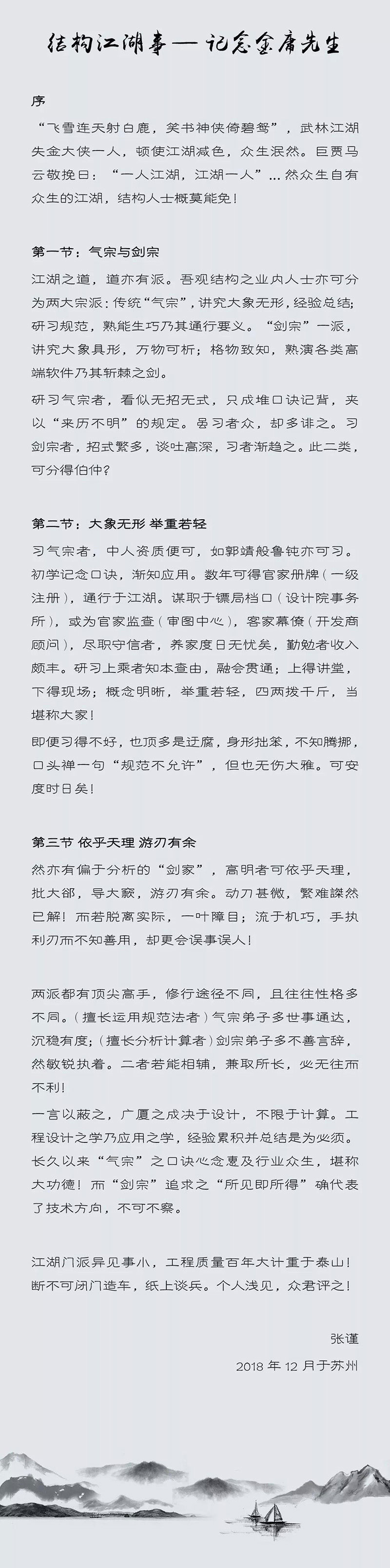 2.2018年12月,第一屆鋼結(jié)構(gòu)設(shè)計(jì)論壇在中衡召開(kāi),臺(tái)上臺(tái)下,交流互動(dòng)熱烈,針對(duì)結(jié)構(gòu)工程師“規(guī)范派”“分析派”的各自優(yōu)缺點(diǎn),作《結(jié)構(gòu)江湖事——記念金庸先生》,算是給年輕工程師的一些職業(yè)建議。