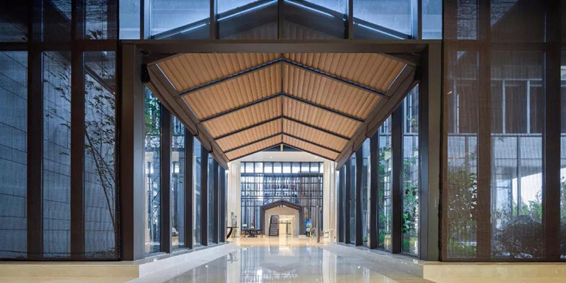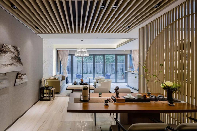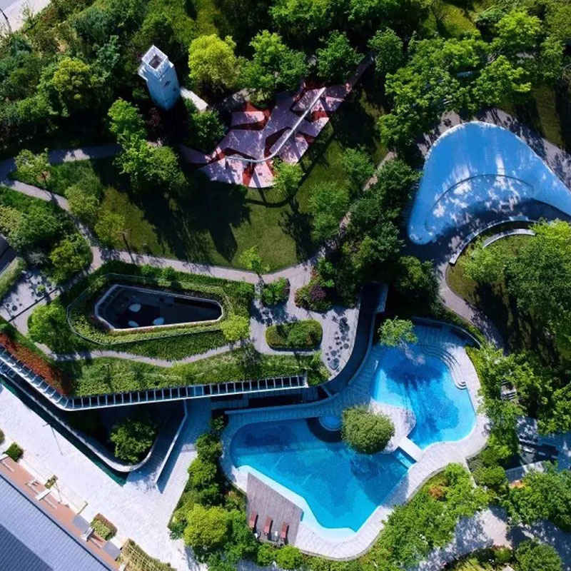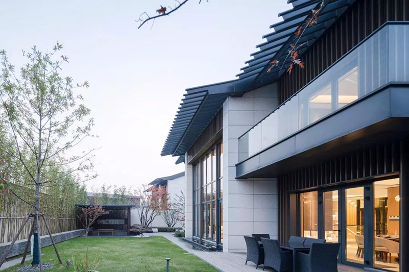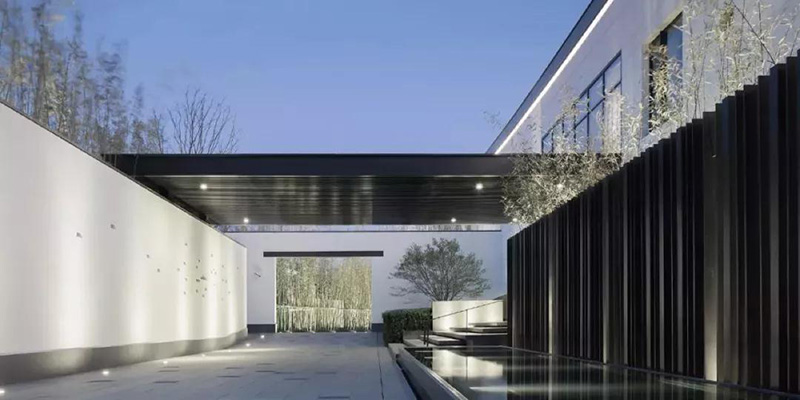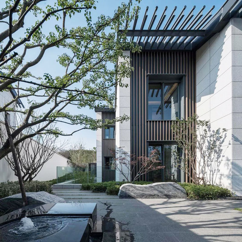景觀設(shè)計(jì)中將古典美與現(xiàn)代美并重表達(dá),面湖浩渺處以無(wú)邊界水池將泳池連接向遠(yuǎn)方,歸來(lái)幽隱處以亭臺(tái)山石收于身旁。作品期望表達(dá)一種入世的隨和。不逃往古代的田園,也不沉淪城市的山林。解構(gòu)傳統(tǒng)并融合當(dāng)下,懷舊而不傷感。