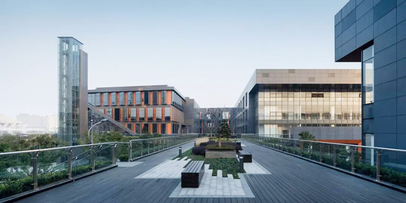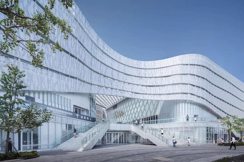 該項(xiàng)目從城市需求出發(fā),立足于創(chuàng)造面向市民的公共型建筑。在高密度、高活性的周邊環(huán)境中打造出城市的綠色呼吸空間,賦予該項(xiàng)目開放而多樣的場(chǎng)所感,將休閑型、消費(fèi)型、運(yùn)動(dòng)型場(chǎng)所空間融為一體。圍繞陽(yáng)光、綠色的主題,盡可能將最原生態(tài)的自然元素引入室內(nèi)外的景觀配置設(shè)計(jì)中,通過(guò)兩個(gè)體塊中間的景觀平臺(tái),讓場(chǎng)地周圍的景觀融入到建筑中。整個(gè)地塊通過(guò)縱向景觀軸線將場(chǎng)地南北兩側(cè)的生態(tài)景觀區(qū)形成了系統(tǒng)性的景觀底圖。