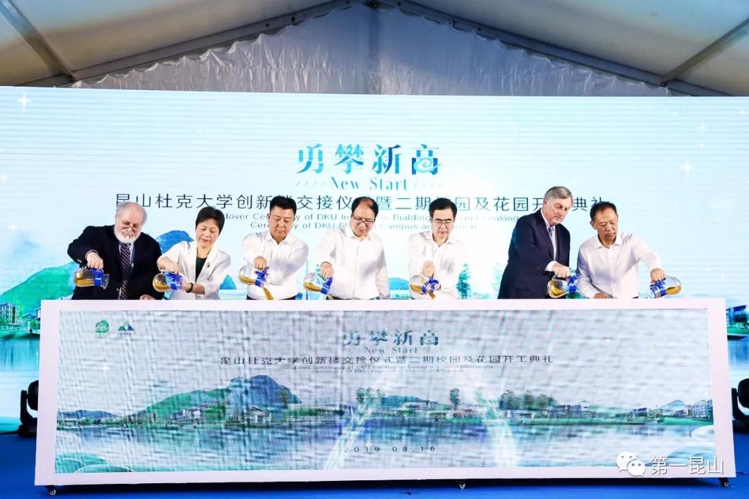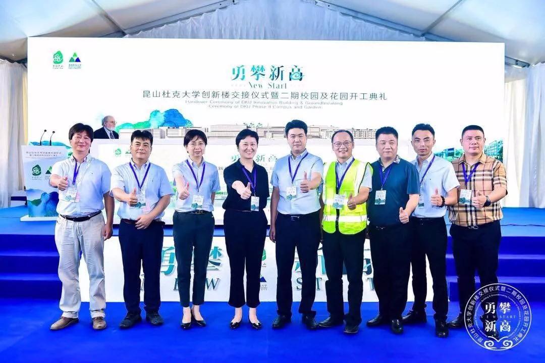 8月16日,昆山杜克大學創(chuàng)新樓交接儀式暨二期校園及杜克花園開工典禮舉行。江蘇省教育廳副廳長王成斌,蘇州市副市長陸春云,昆山市委書記杜小剛、副市長李暉,美國杜克大學前董事、昆山杜克大學理事托馬斯?高瑞,美國杜克大學執(zhí)行副教務長詹妮弗?弗朗西斯、公共事務與政府關系副校長邁克?舍恩菲爾德,武漢大學副校長李斐,昆山杜克大學校長馮友梅、常務副校長丹尼斯?西蒙,以及昆山杜克大學教職工和學生代表等出席活動。中衡設計集團股份有限公司總經(jīng)理張謹,副總經(jīng)理、工程公司董事長陸學君,副總建筑師丘琳,以及中衡設計昆山杜克大學項目組同仁等共同參加此次活動。