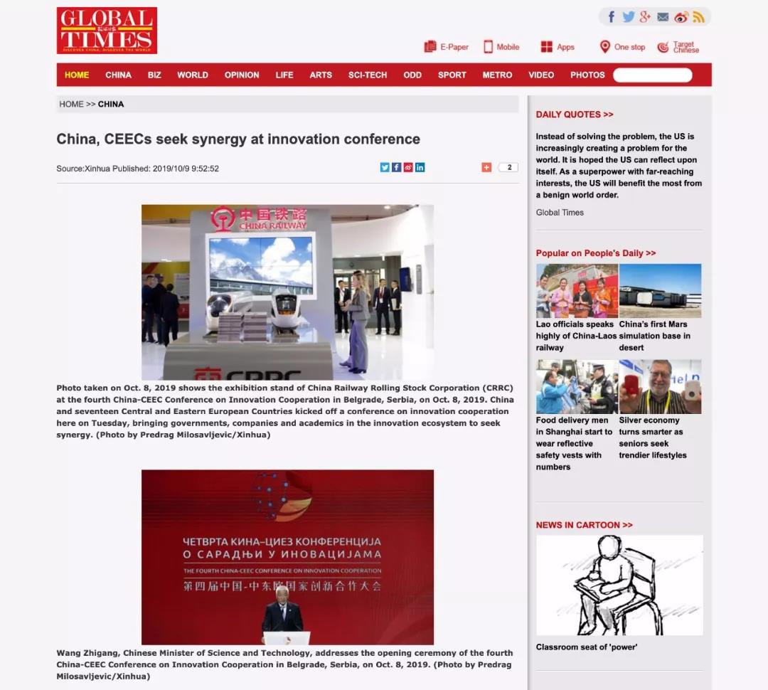 據新華社、央視網、人民網、光明網等報道,第四屆中國-中東歐國家創(chuàng)新合作大會8日在貝爾格萊德開幕,中國科技部部長王志剛、塞爾維亞總理布爾納比奇、塞爾維亞負責創(chuàng)新與技術發(fā)展的波波維奇部長以及來自匈牙利、捷克、斯洛文尼亞等中東歐國家的部長們共同出席了開幕式并參觀了中國高鐵、華為5G、中塞工業(yè)園等中國高科技展位。中衡設計集團總經理助理、精筑技術設計研究院院長路江龍應邀參加此次大會,就參與蘇州工業(yè)園區(qū)建設經驗,以及塞爾維亞政府和中國路橋共同投資建設的中國塞爾維亞工業(yè)園區(qū)的創(chuàng)新發(fā)展合作做大會交流發(fā)言。