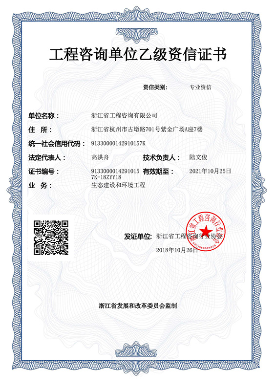 工程咨詢單位乙級(jí)資信證書-生態(tài)建設(shè)和環(huán)境工程