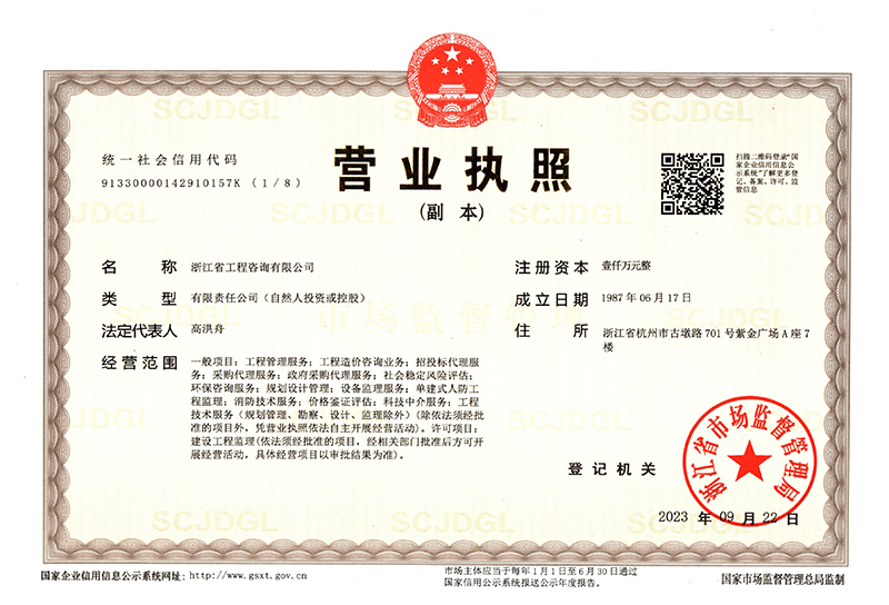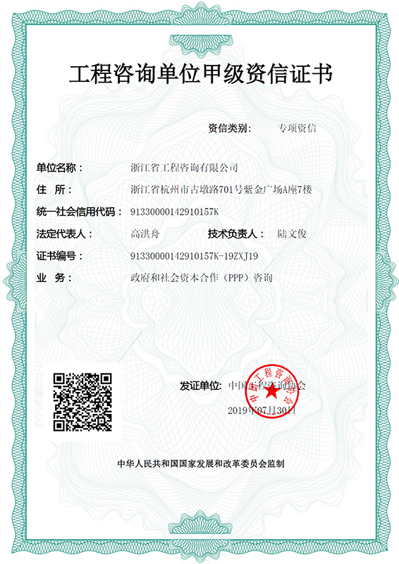 工程咨詢單位甲級(jí)資信證書-政府和社會(huì)資本合作(PPP)咨詢