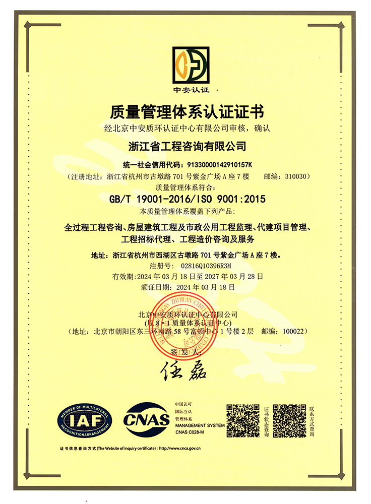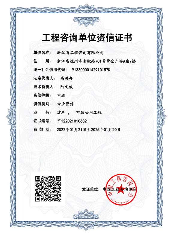 工程咨詢單位甲級(jí)資信證書-建筑、市政公用工程