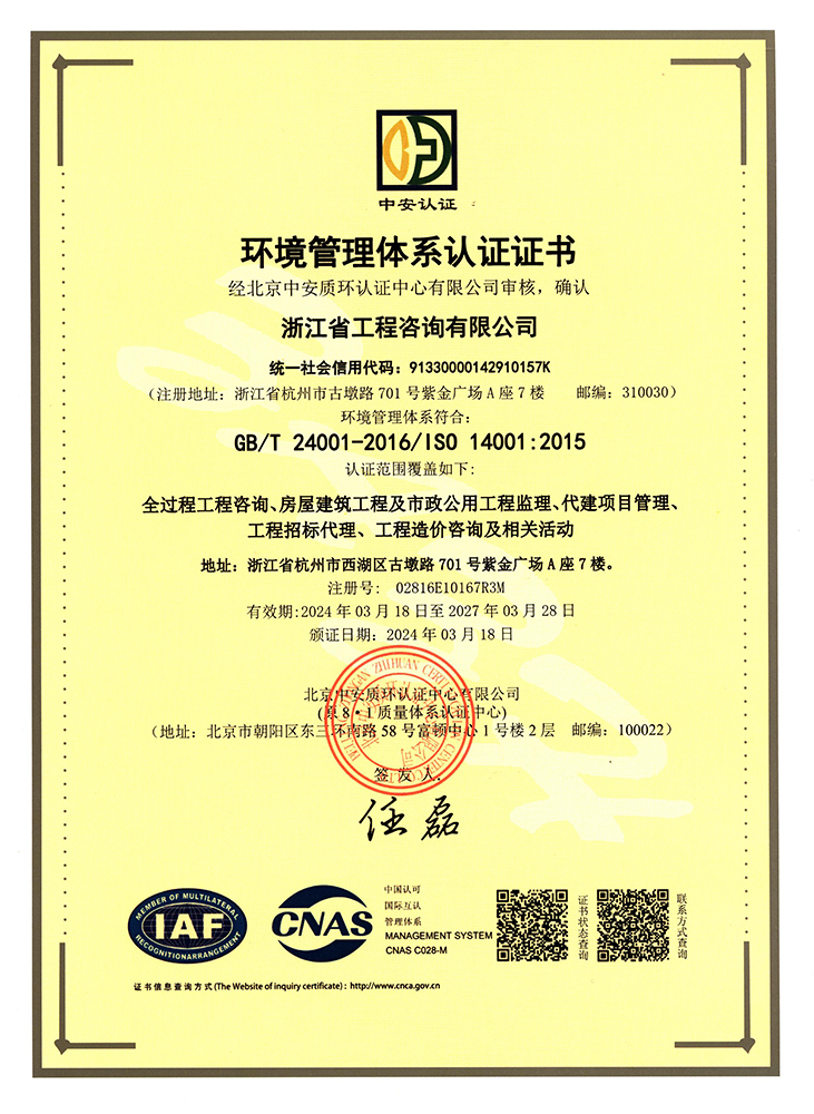 環(huán)境管理體系認(rèn)證證書