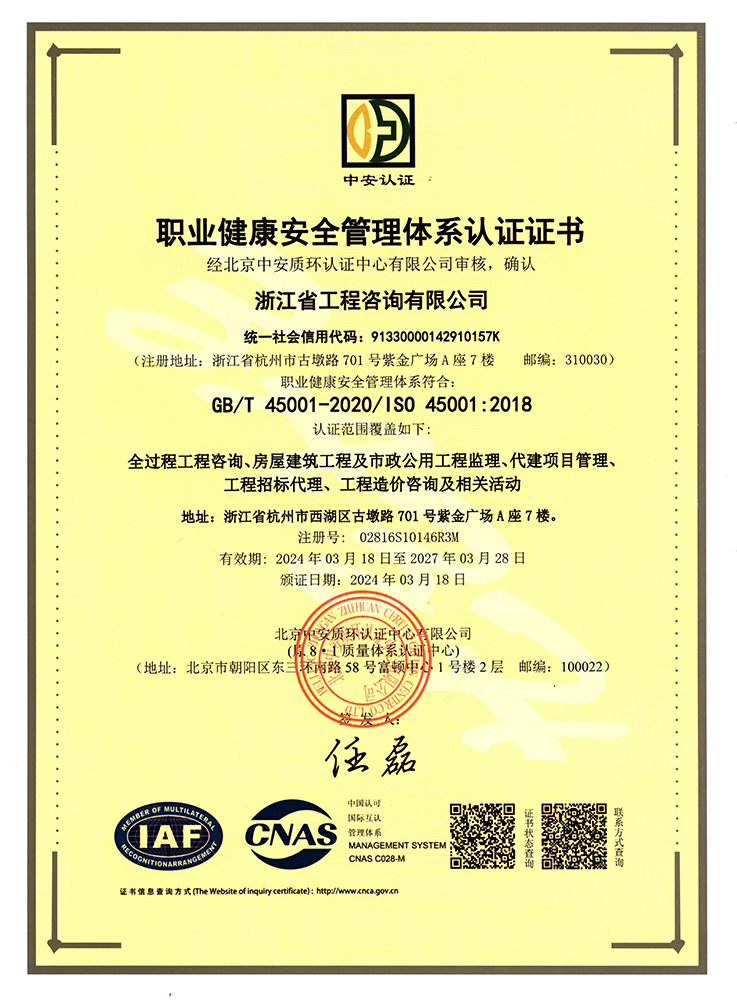 職業(yè)健康安全管理體系認(rèn)證證書