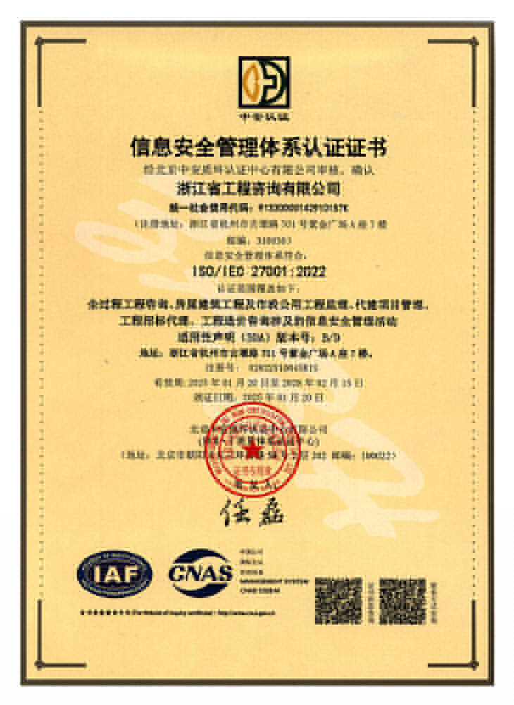 信息安全管理體系認(rèn)證證書